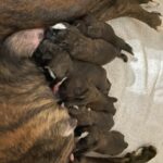 Am Samstag, den 4. März 2023 wurde unser F-Wurf geboren. Elodie hat die letzten zwei Wochen vor der Geburt schlecht gefressen und nur wenig noch zugenommen. Es war ihr anzumerken, dass sie schwer zu tragen hatte. Die erste Hündin kam um 11.35 Uhr, der letzte Rüde um 22.12 Uhr. Sie hat acht Welpen geboren, von denen ein kleiner Rüde leider tot geboren wurde. Wir freuen uns über zwei Rüden und fünf Hündinnen.
